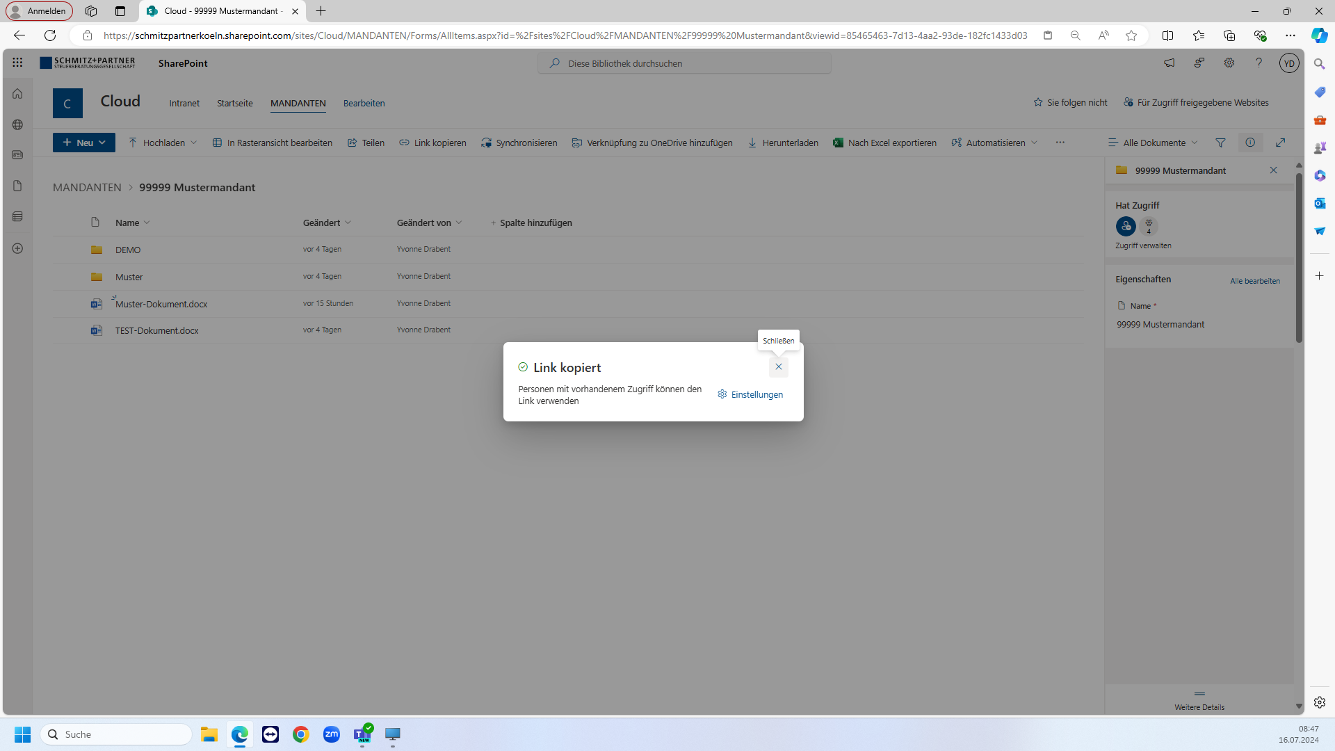 Der Link kann nun erneut an den Mandanten versendet werden.