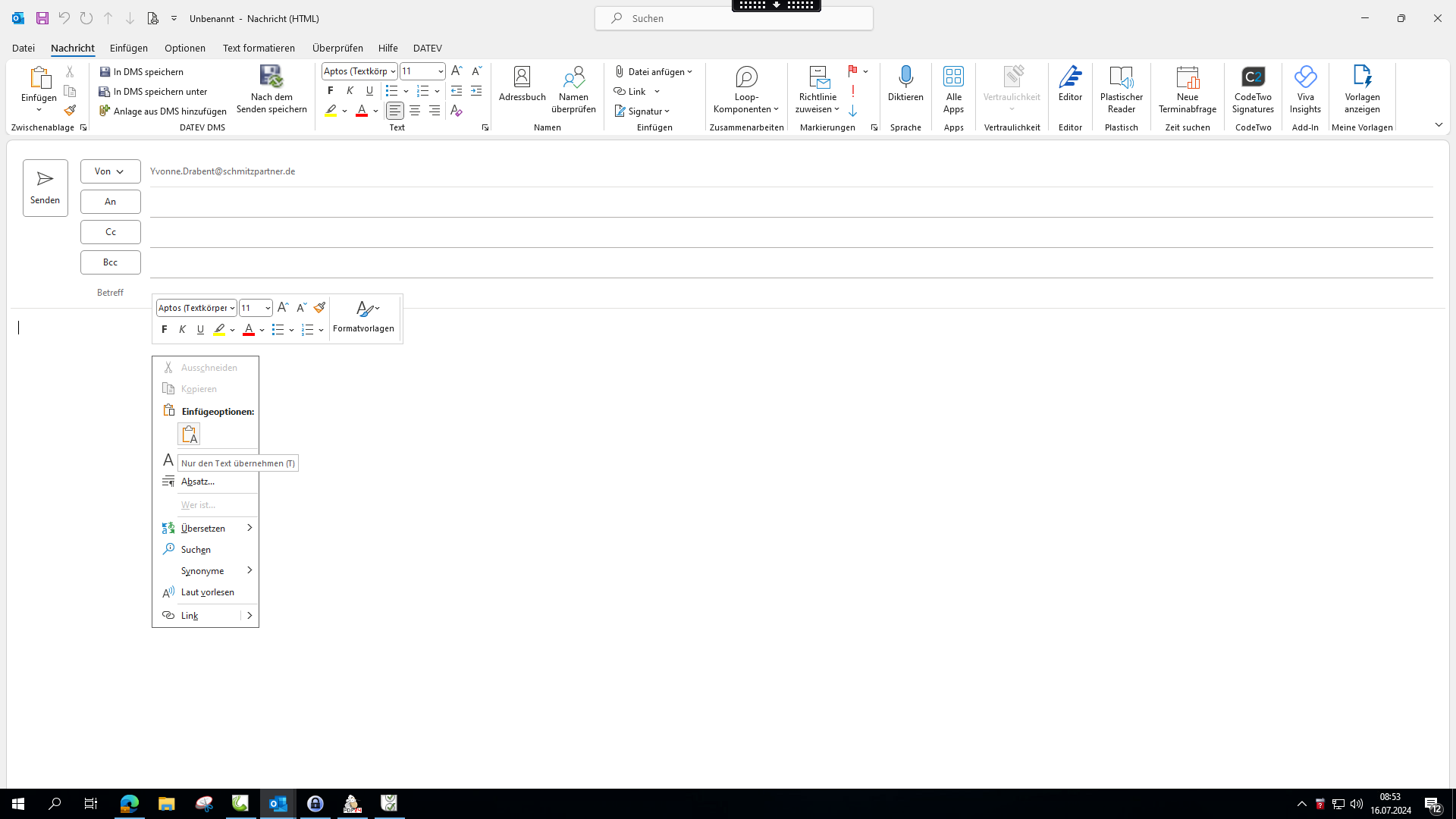 mit Rechtsklick Kontextmenü öffnen, „einfügen“ wählen
