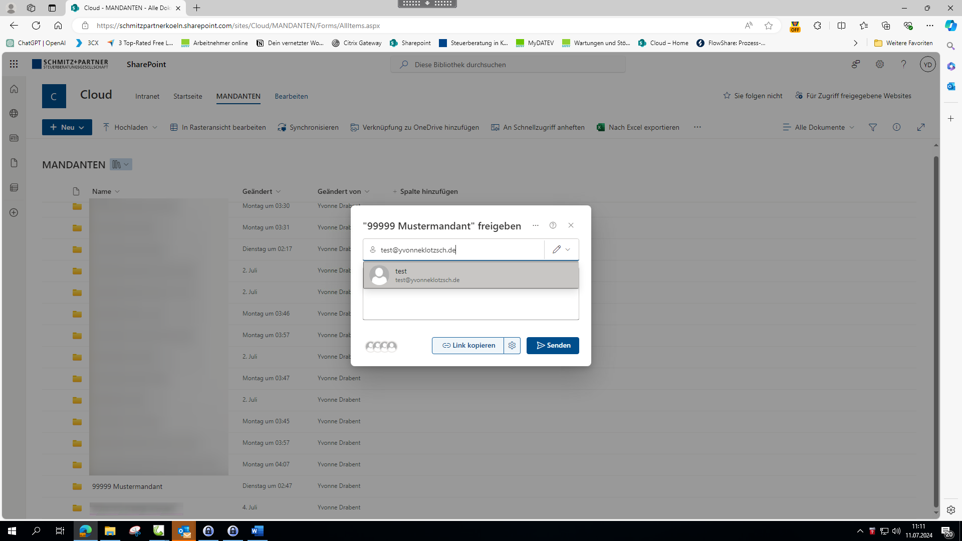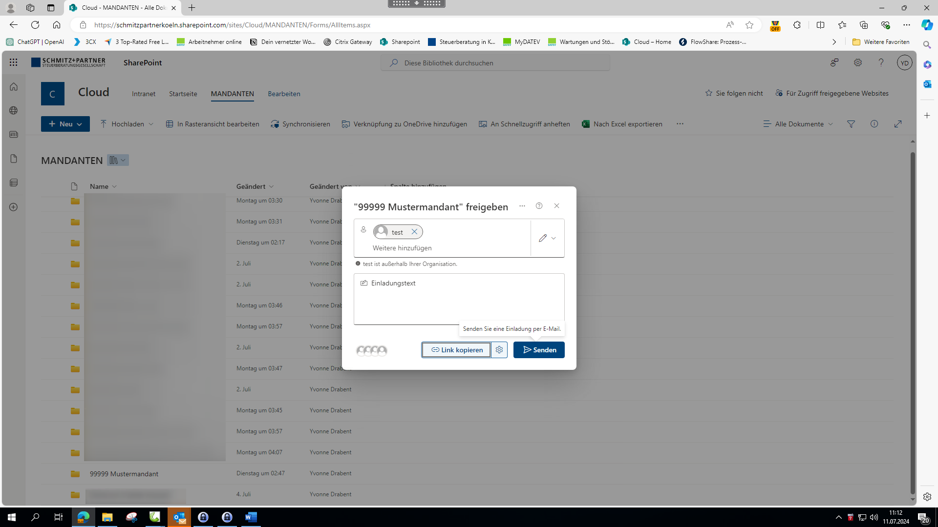 Mit „Senden„ verschicken wir die Einladung. Der Empfänger erhält eine E-Mail mit Link und der Möglichkeit sich entweder mit einem Microsoft Konto oder mit einem Code, der per E-Mail versendet wird, zu verifizieren.