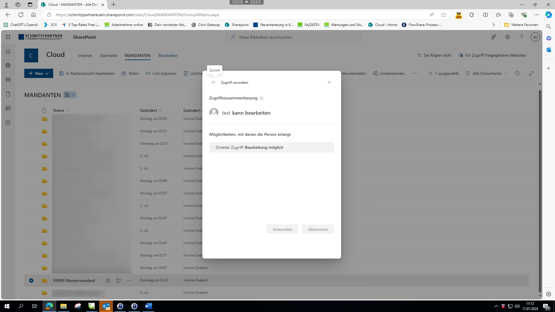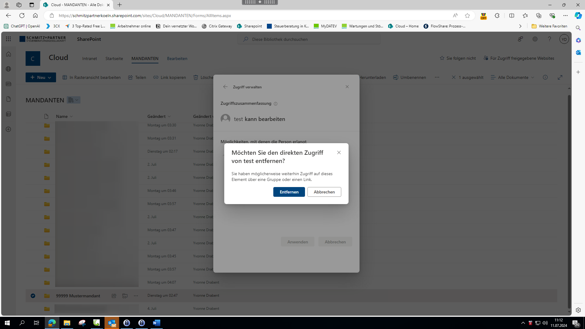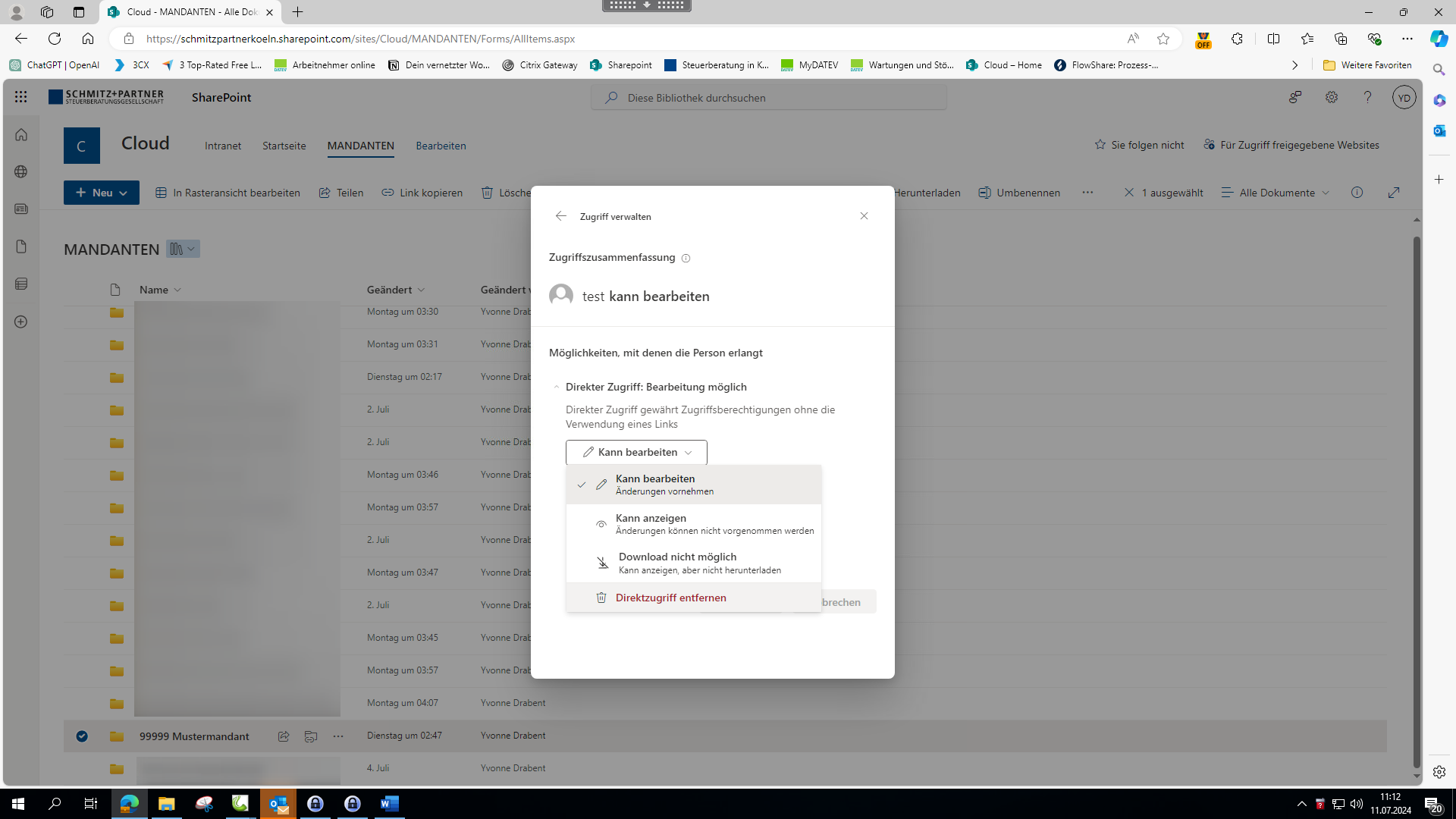 Hier ist auch das Entfernen der Berechtigung möglich.