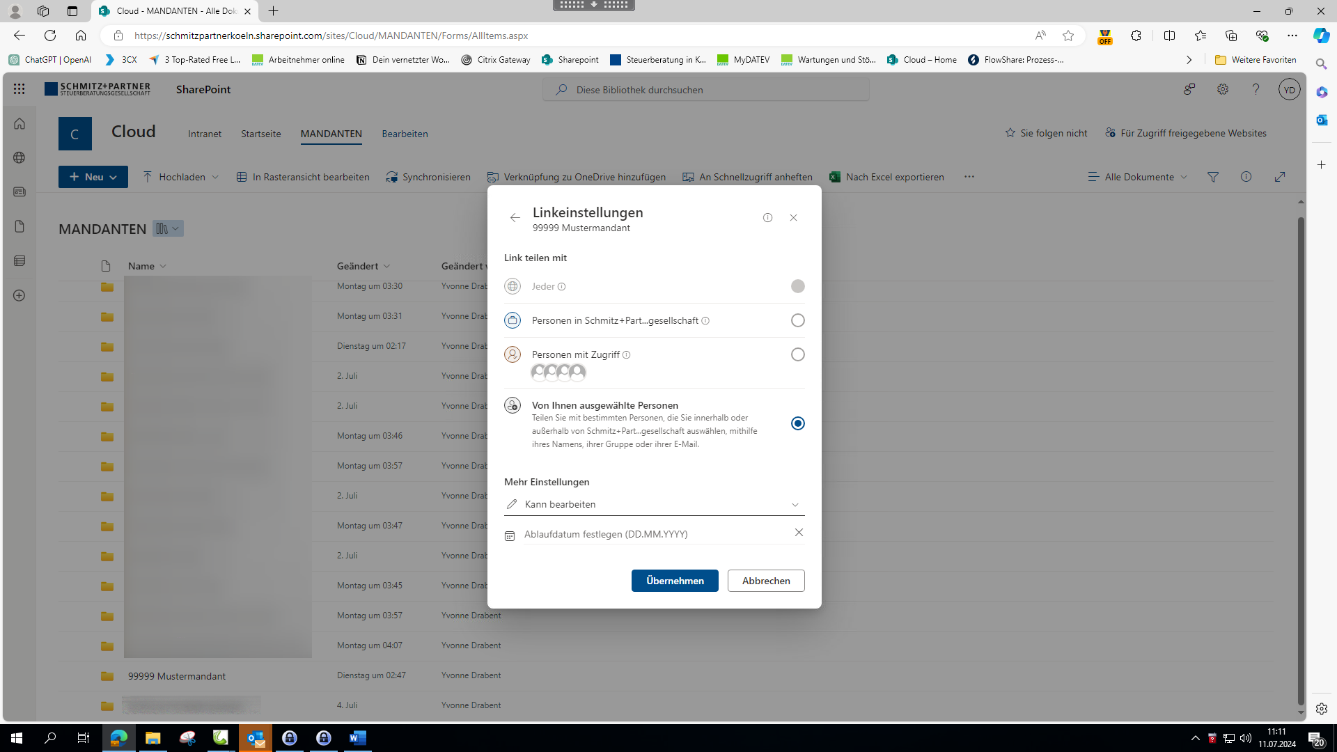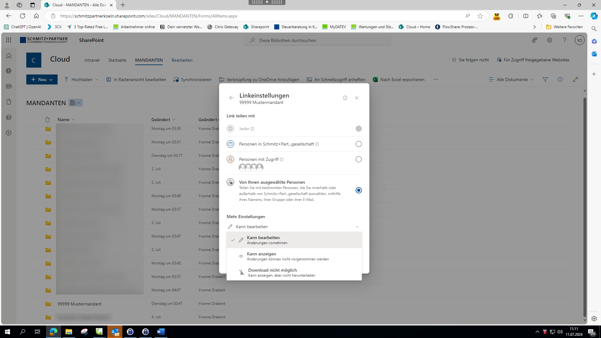 Es ist möglich nur Leserechte zu erteilen oder/und ein Ablaufdatum festzulegen.