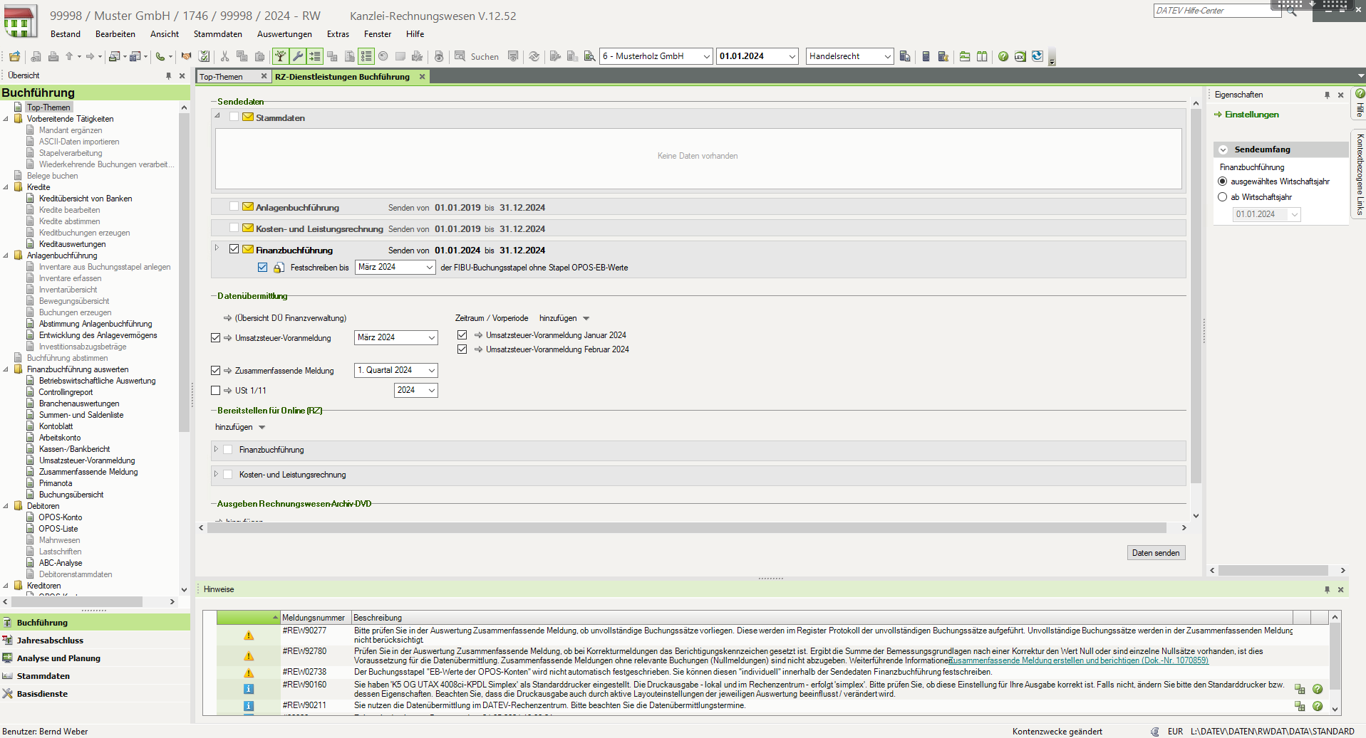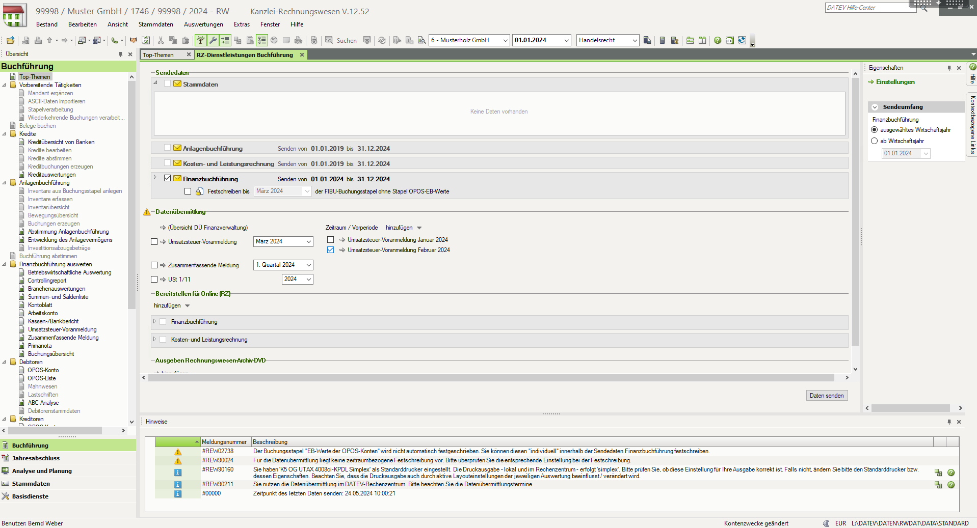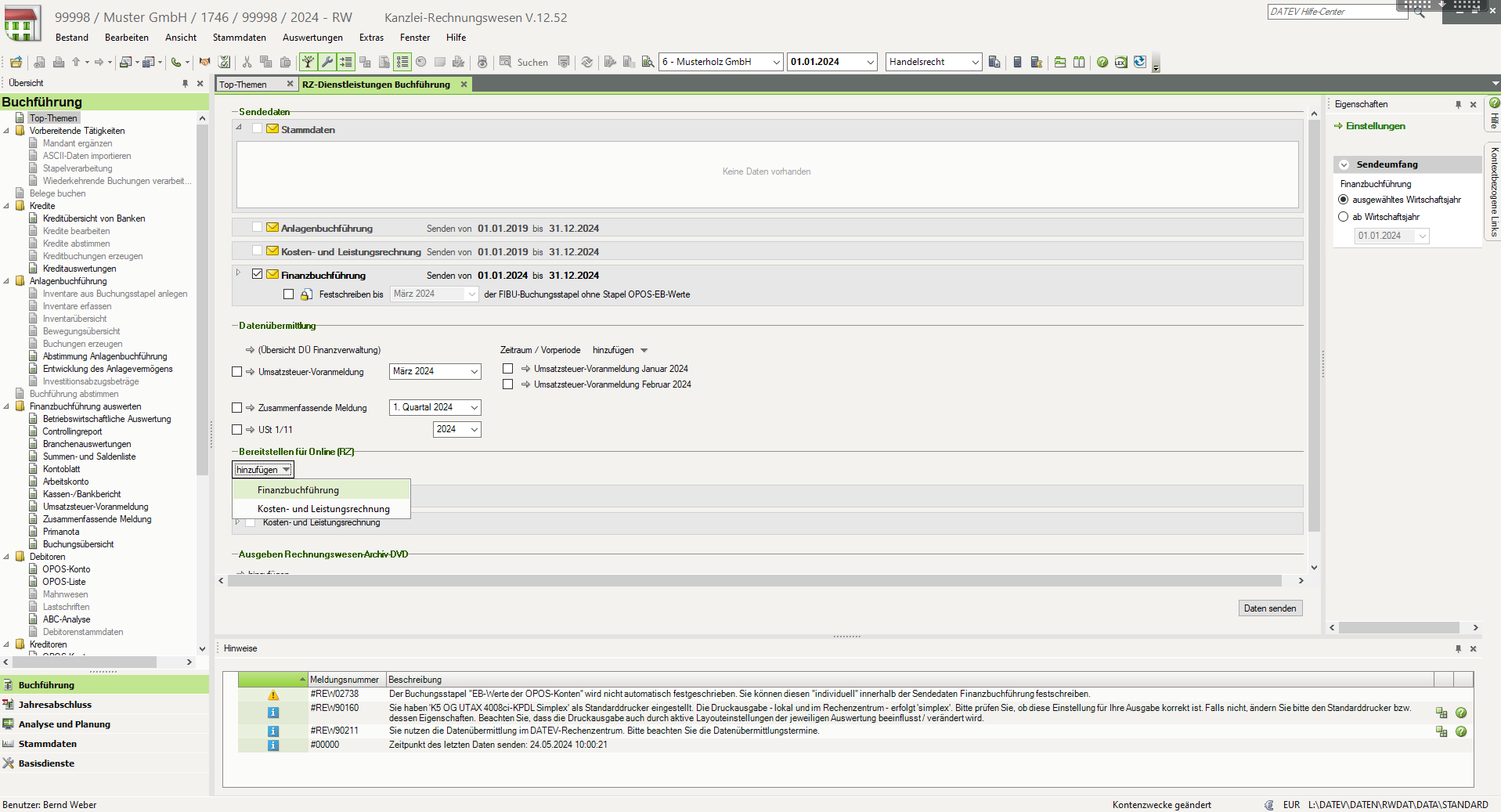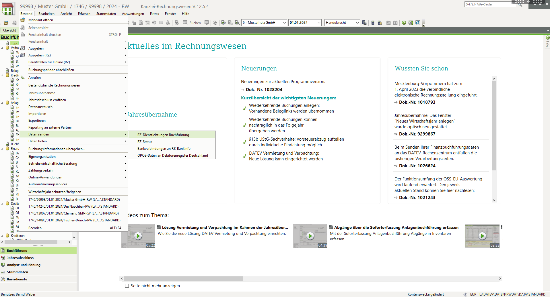 Klicken Sie im Menü Daten senden auf RZ-Dienstleistungen Buchführung
