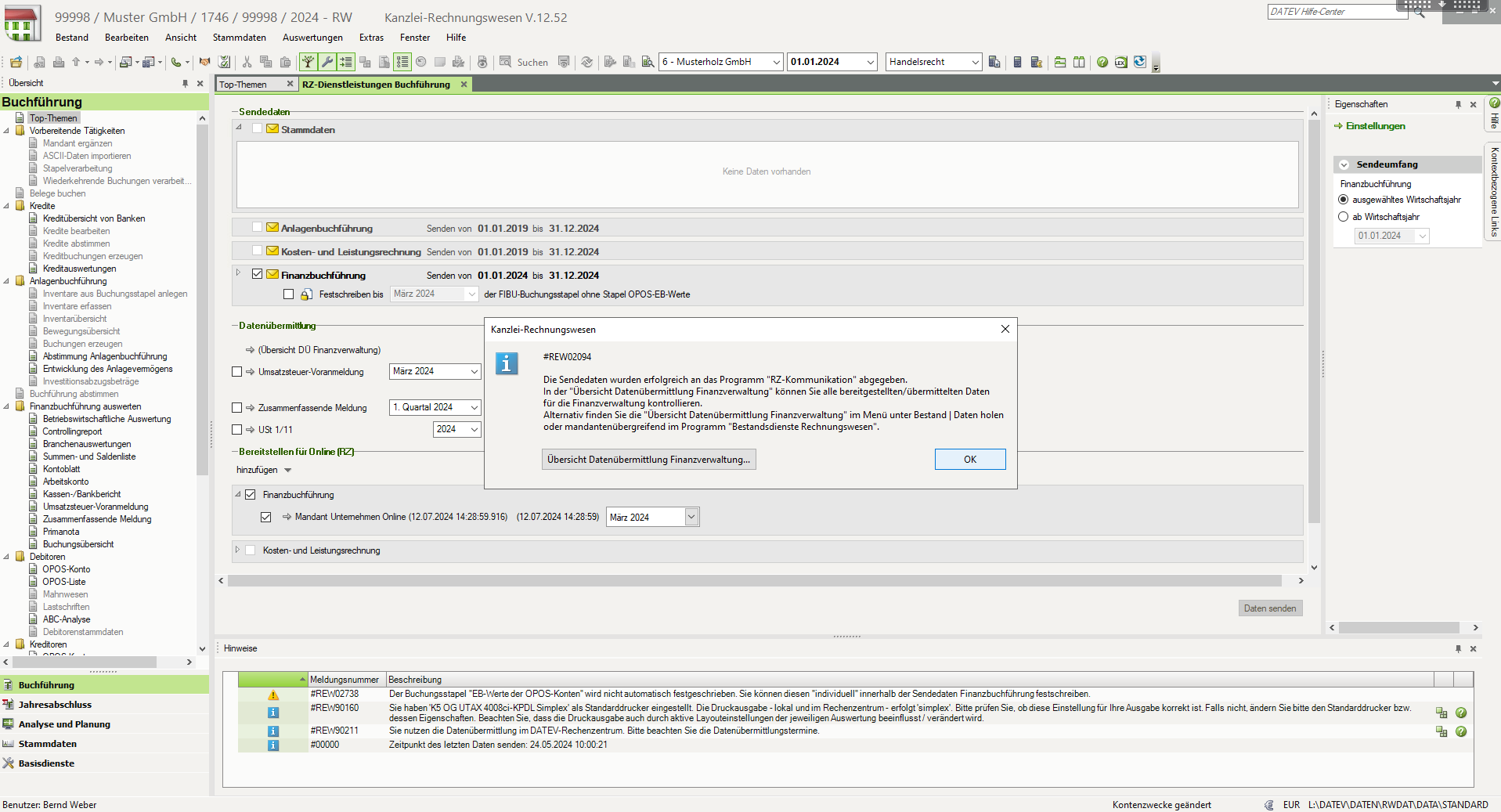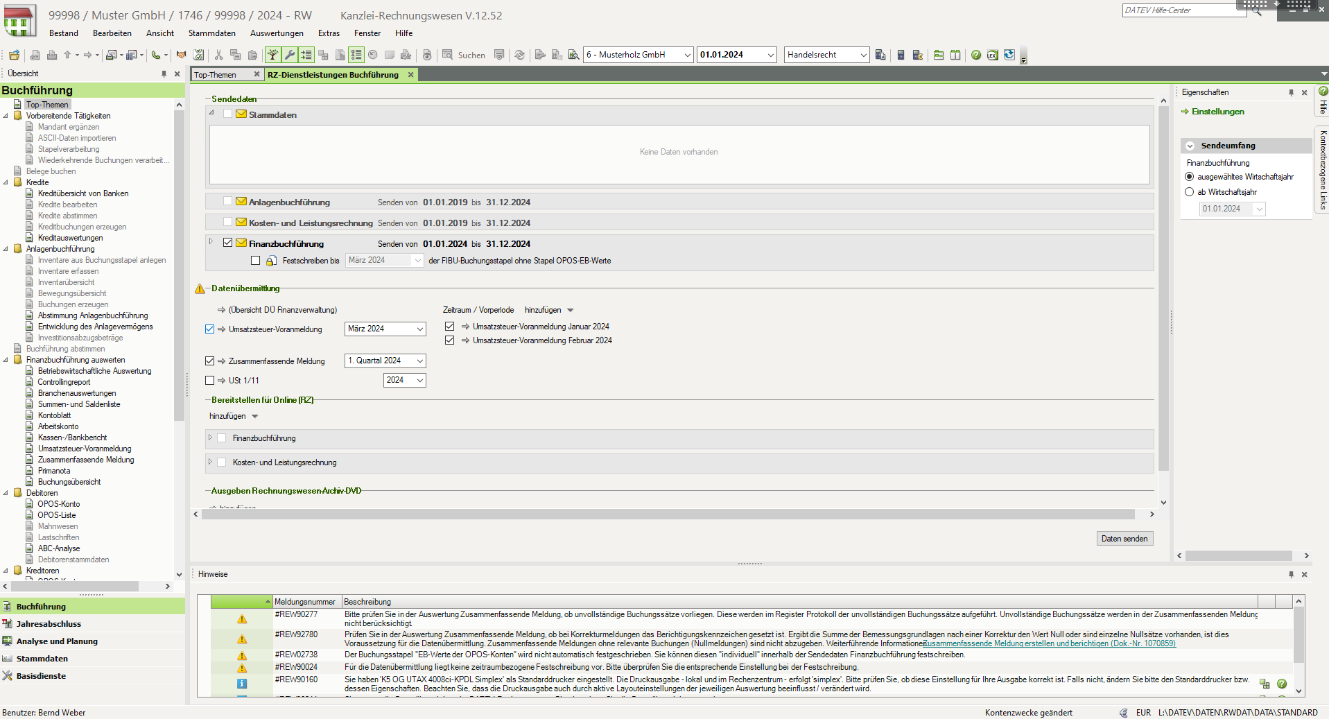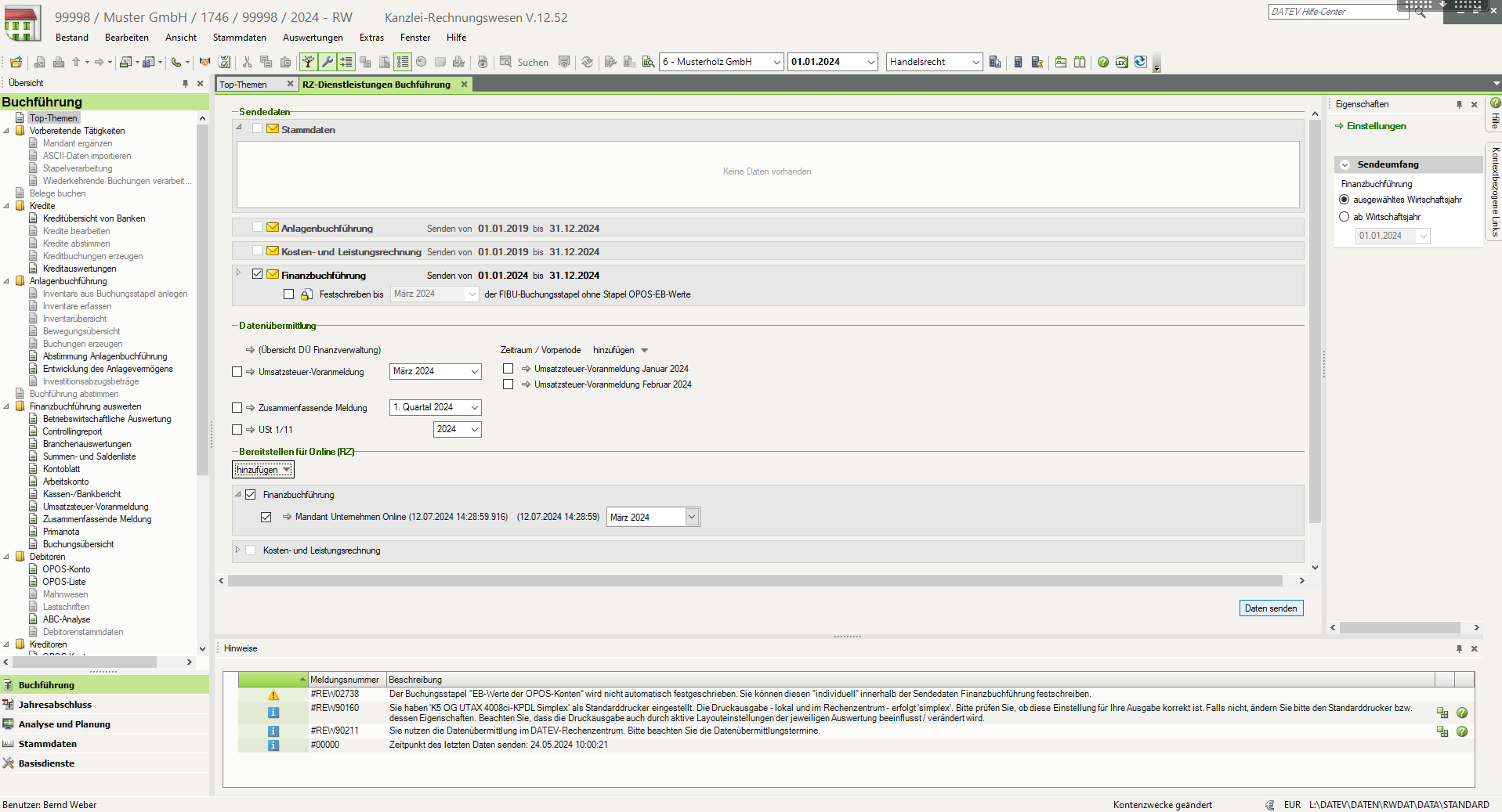 Klicken Sie im Menü Daten senden auf RZ-Dienstleistungen Buchführung