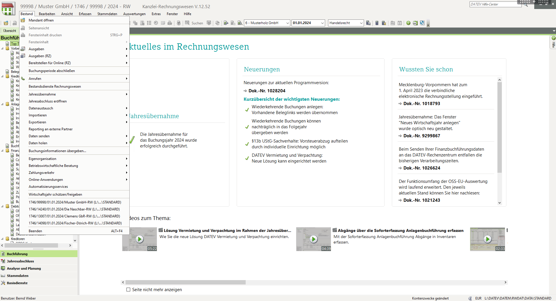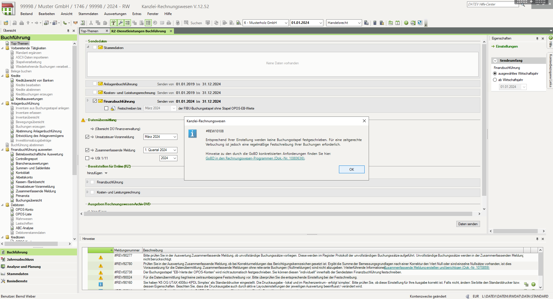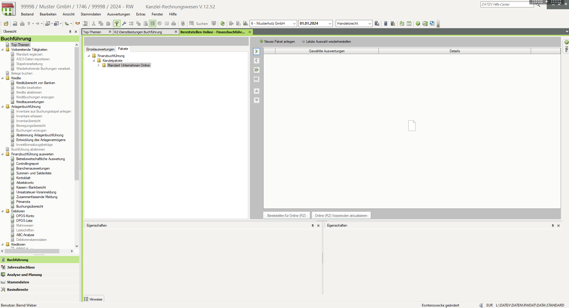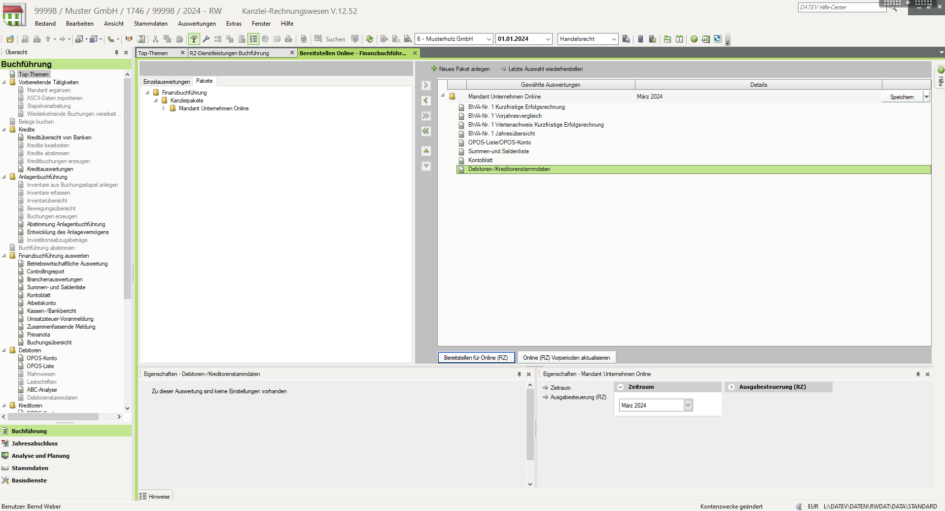 Klicken Sie im Menü Daten senden auf RZ-Dienstleistungen Buchführung
