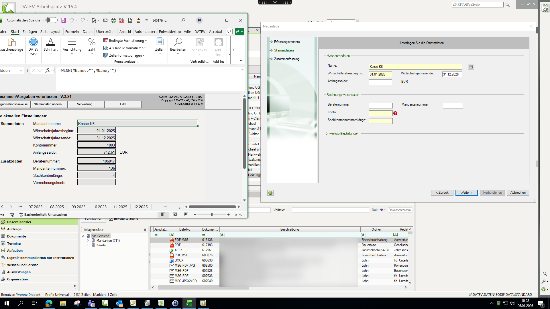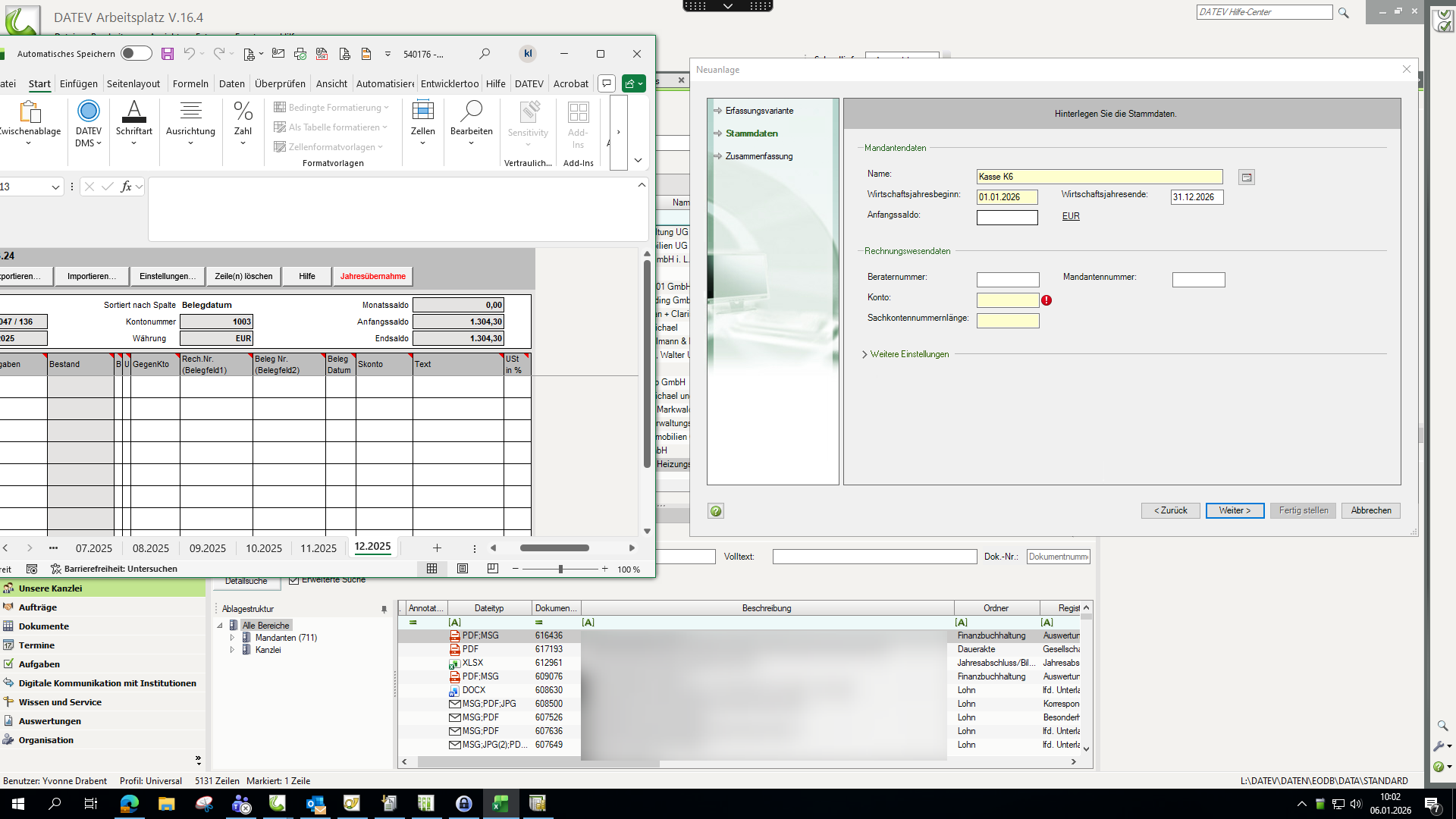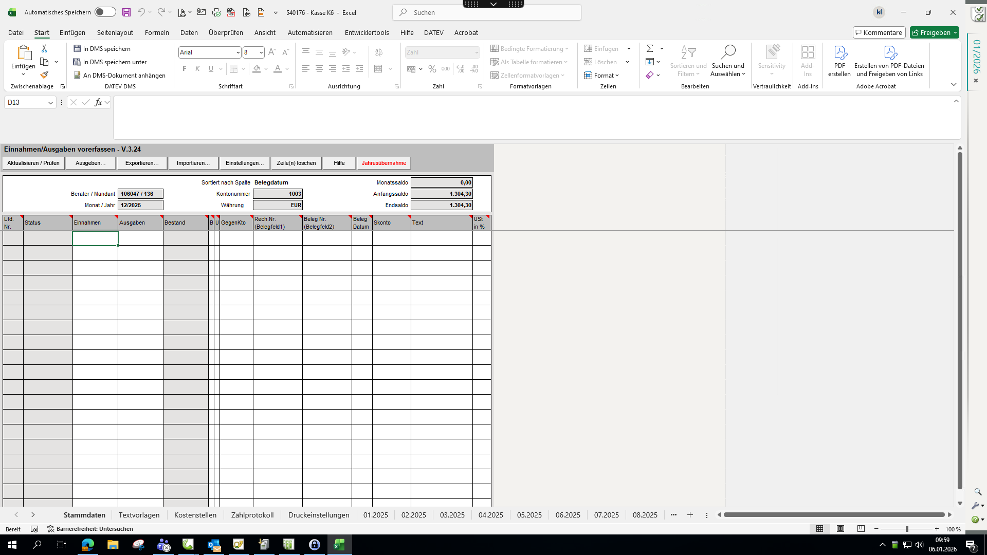 Endsaldo von Dezember als Anfangssaldo erfassen.