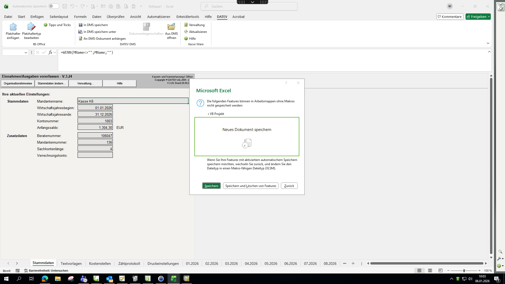 Kassen- und Warenerfassung f. Office und öffnen wählen.