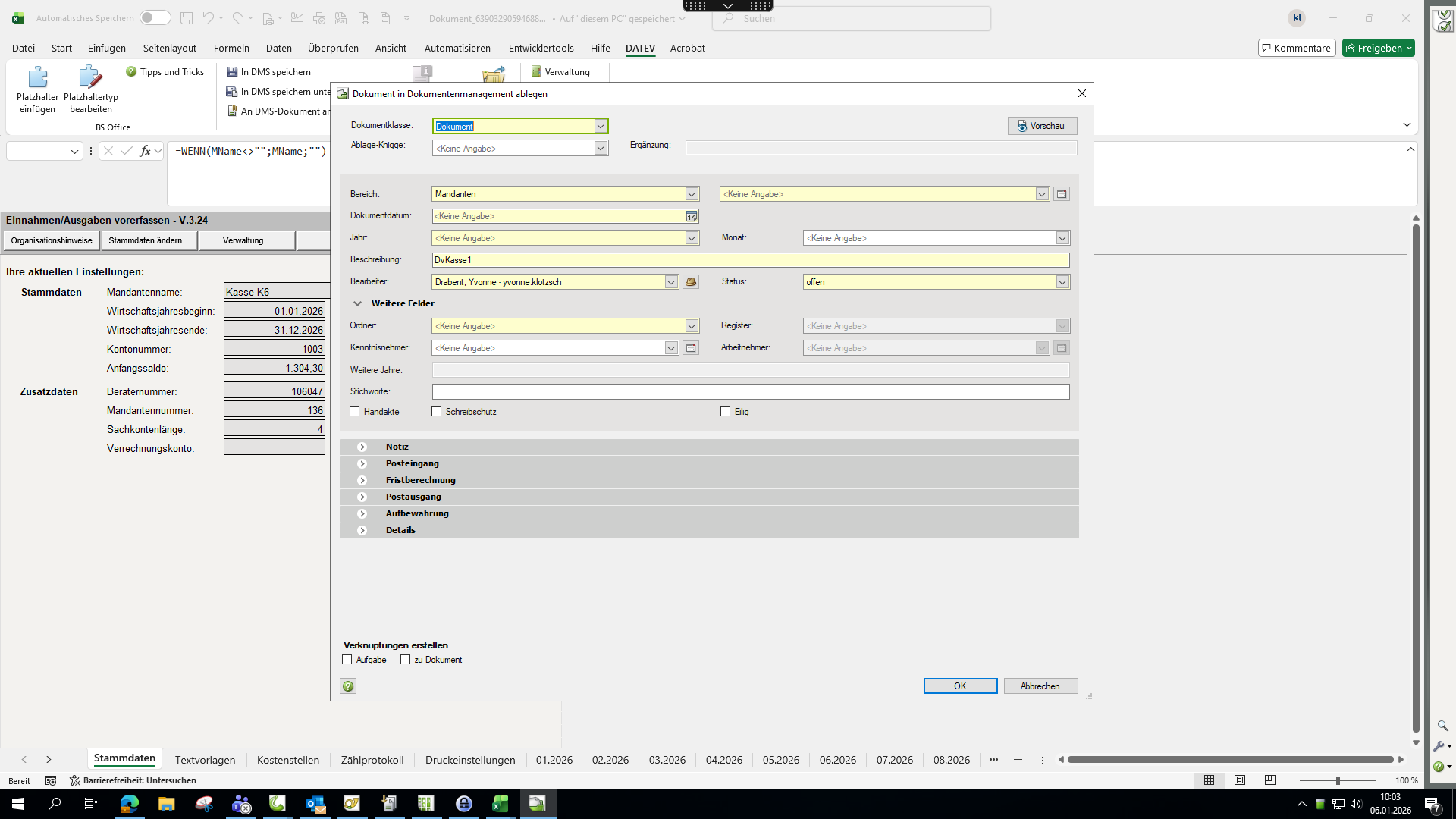 Weitere Stammdaten erfassen - falls nicht erledigt.